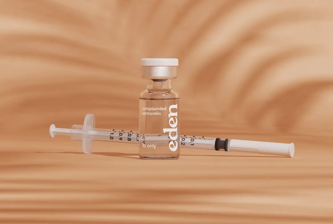 Important information: Sermorelin discussed here may be prescribed as a compounded medication. Compounded medications are not FDA-approved and are not reviewed by the FDA for safety, effectiveness, or manufacturing quality. Eden coordinates care; licensed providers evaluate and prescribe; partner pharmacies dispense and label.